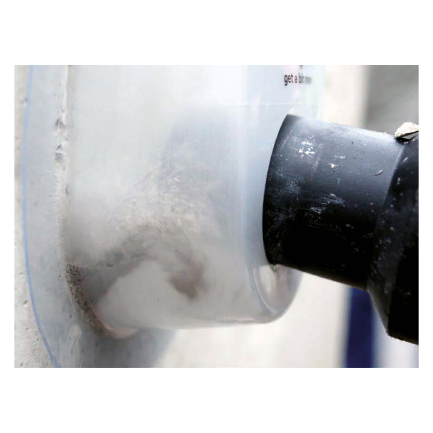 При включении пылесос создаёт разрежение внутри переходника, что обеспечивает его плотное прилегание к поверхности и эффективное удаление более 90% образующейся пыли и шлама.