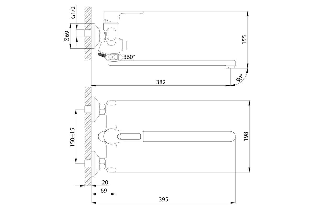 Смеситель для ванны длинный излив ROSSINKA RS43-32