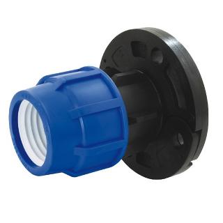 Фланец адаптер пластиковый (фланцевое соединение) — предназначен для присоединения полиэтиленового трубопровода диаметром от 40 до 63 мм к стальному трубопроводу.