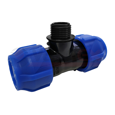 Тройник компрессионный переходной с наружной резьбой — фитинг, предназначенный для соединения трех отрезков трубы, один из которых устанавливается перпендикулярно двум другим.
