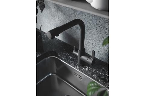 • Смеситель для кухни с высоким поворотным изливом с переключением на фильтр STICK.