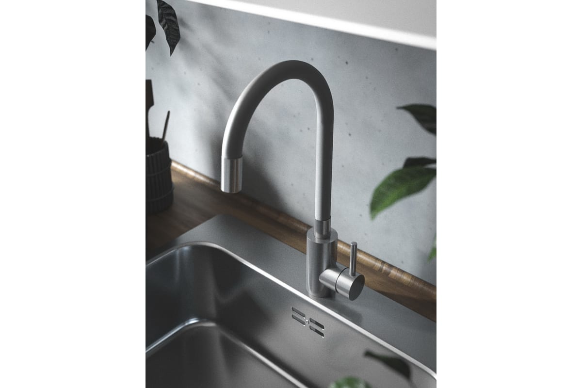 • Матовая поверхность нержавеющей стали идеально сочетаетя с поверхностью кухонной мойки.