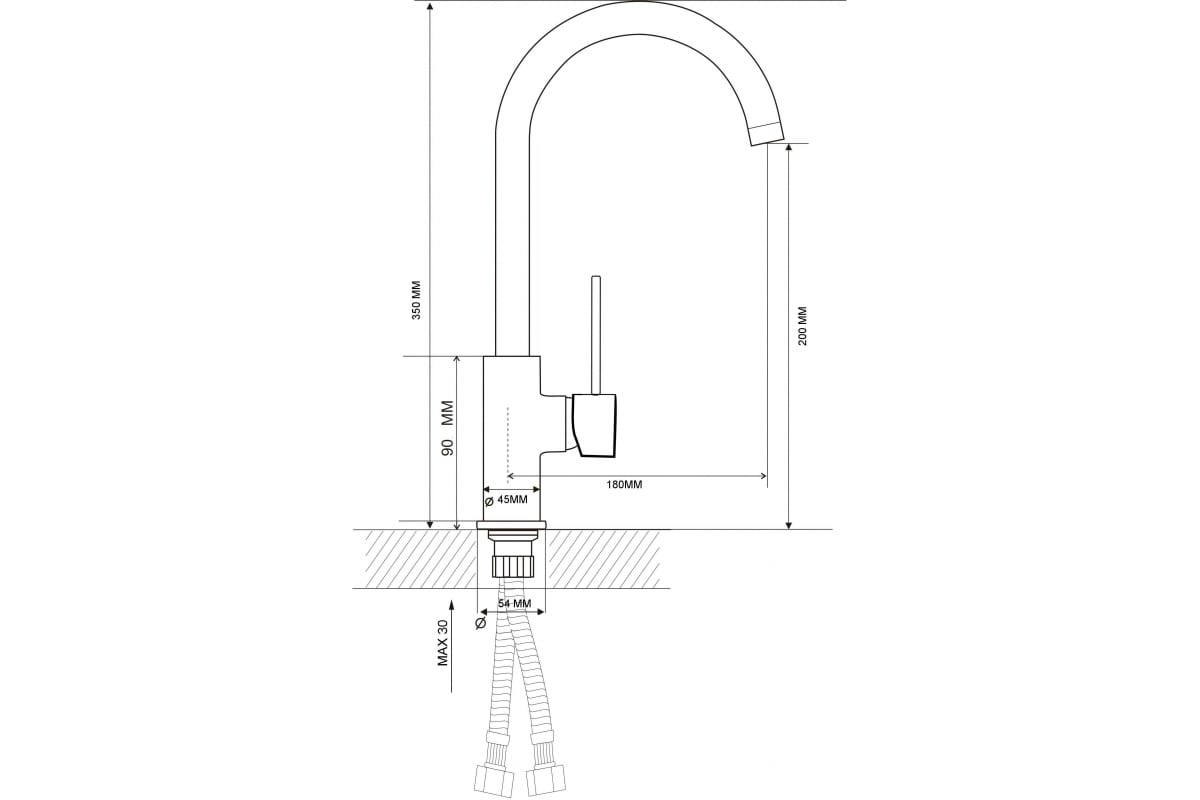 • Смеситель для кухни с высоким гибким изливом KITCHEN.