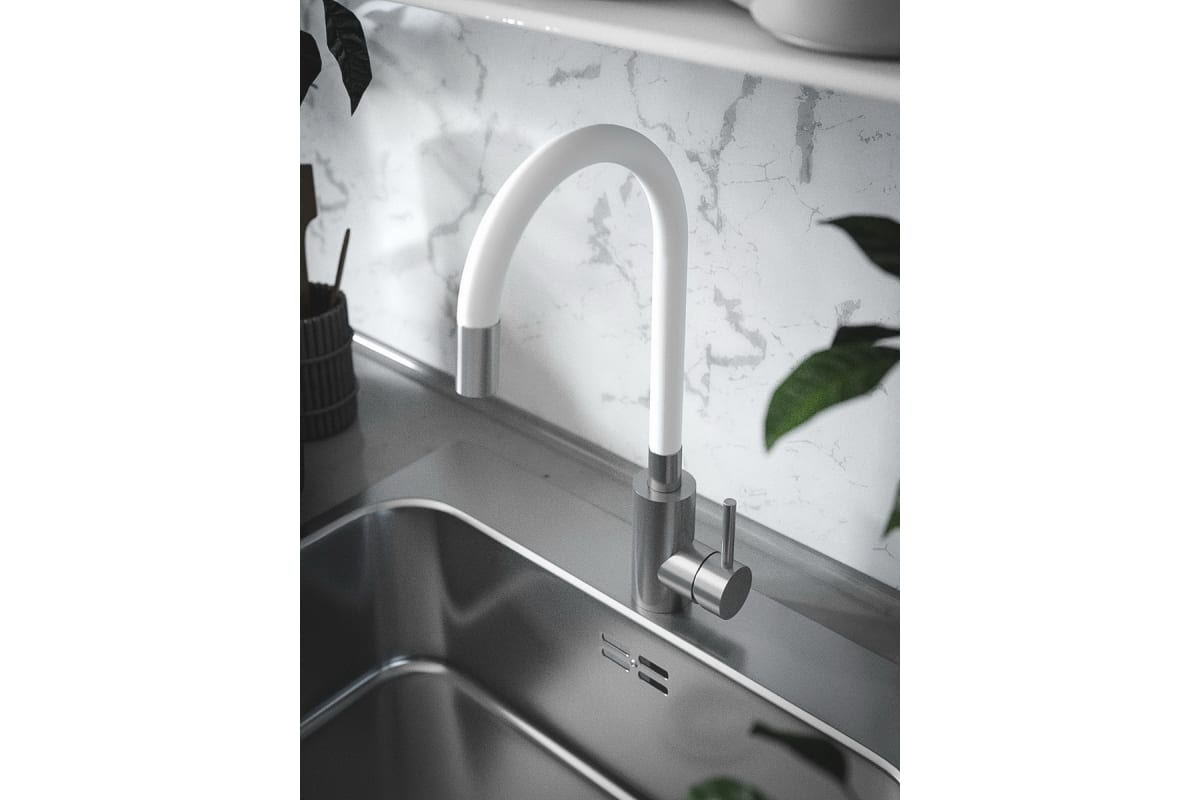 • Гибкий излив и нержавеющей стали, покрытый матовым силиконом придаёт дополнительный комфорт при использовании.