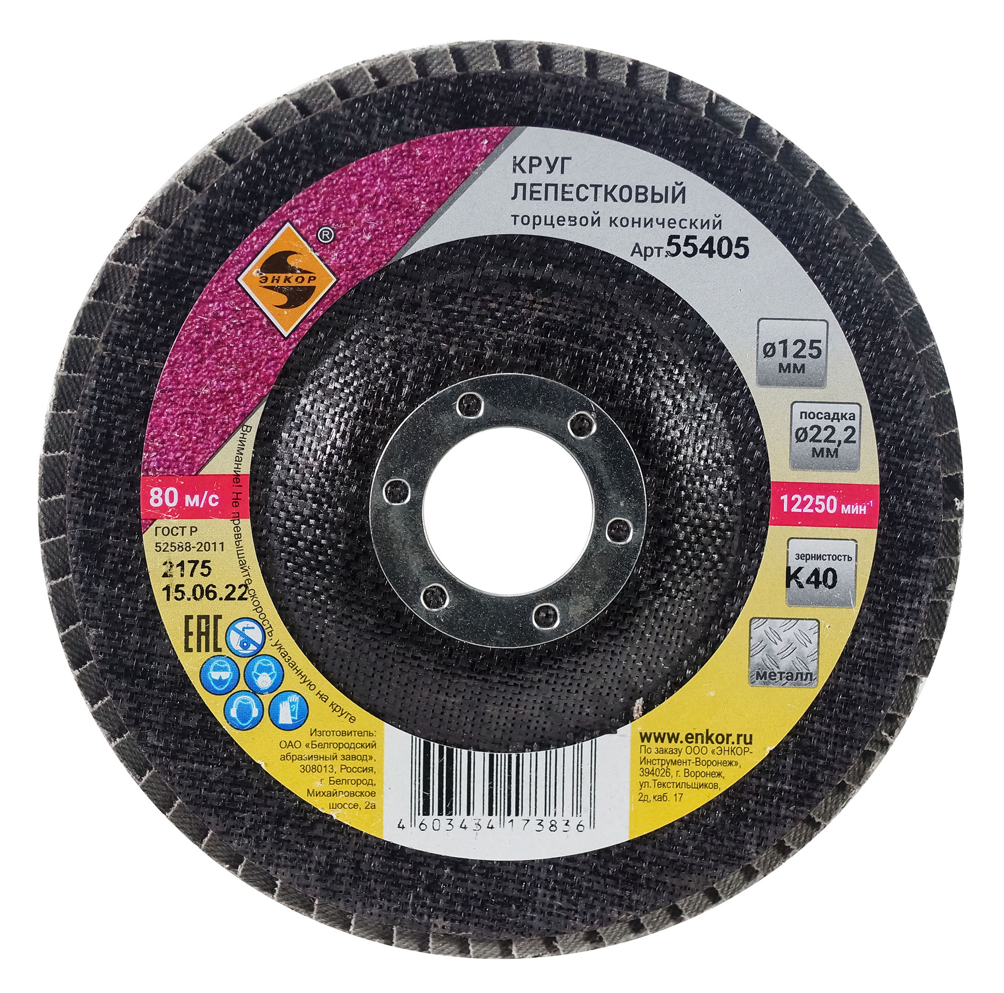 Круг лепестковый торцевой конический Ø 125х22,2 К40 Энкор (55405)