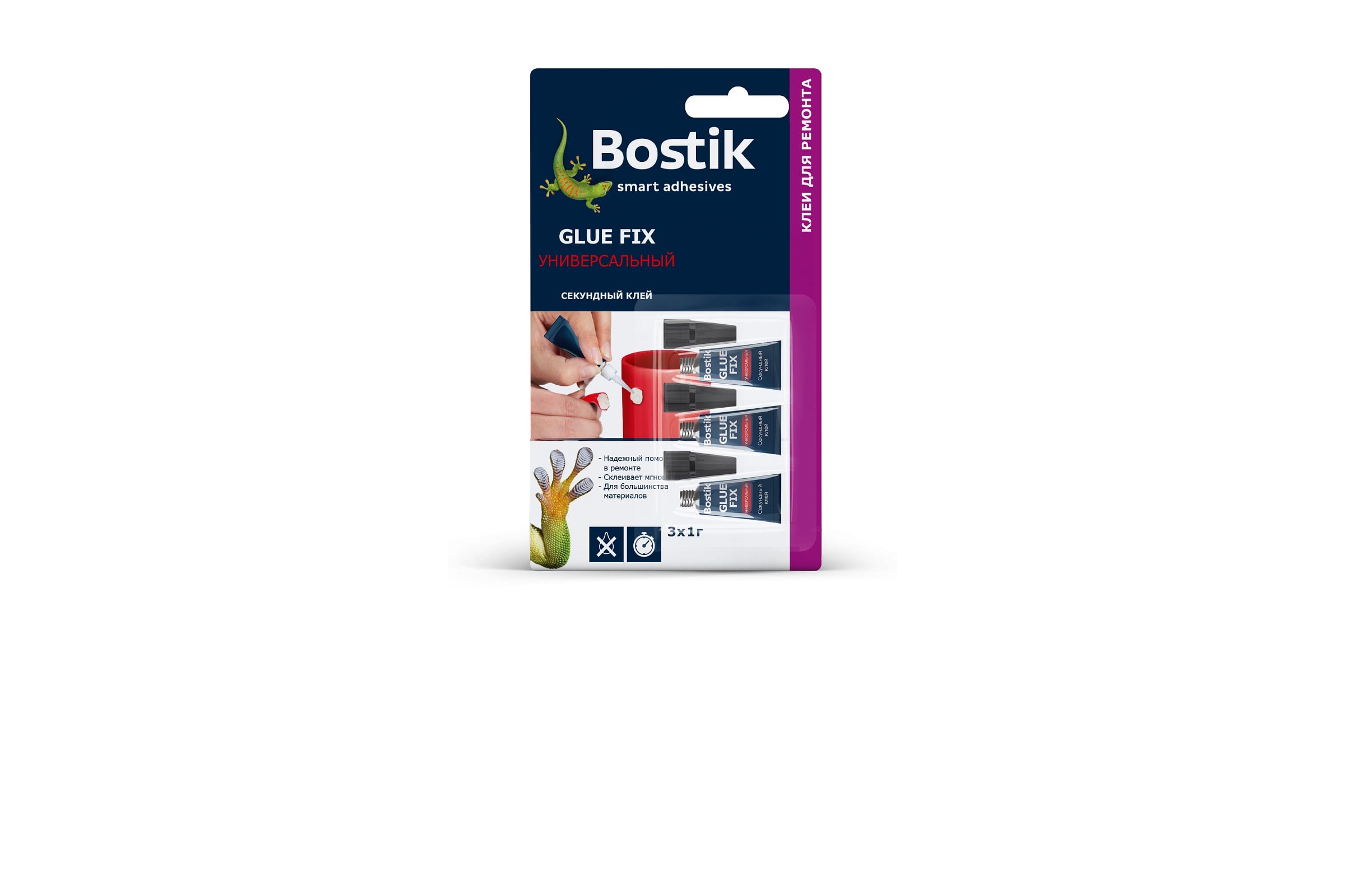 • Универсальный секундный клей Bostik GLUE FIX 3x1гр 17211403 предназначен для моментального склеивания, ремонта изделий небольшого размера.