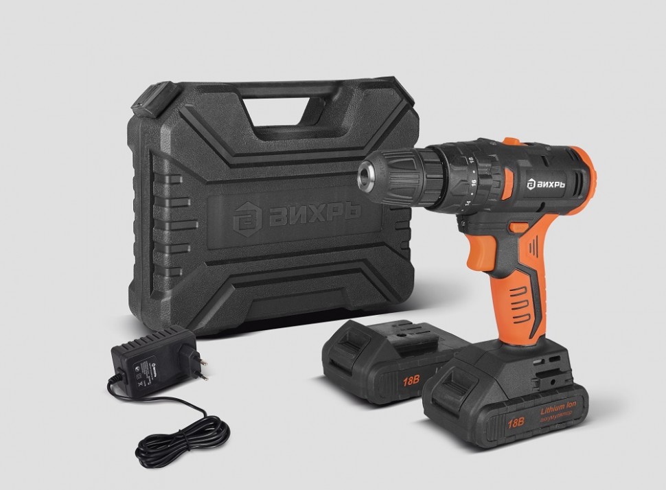 Аккумуляторная дрель-шуруповерт Вихрь ДА-18Л-2К/Б (72/14/22)