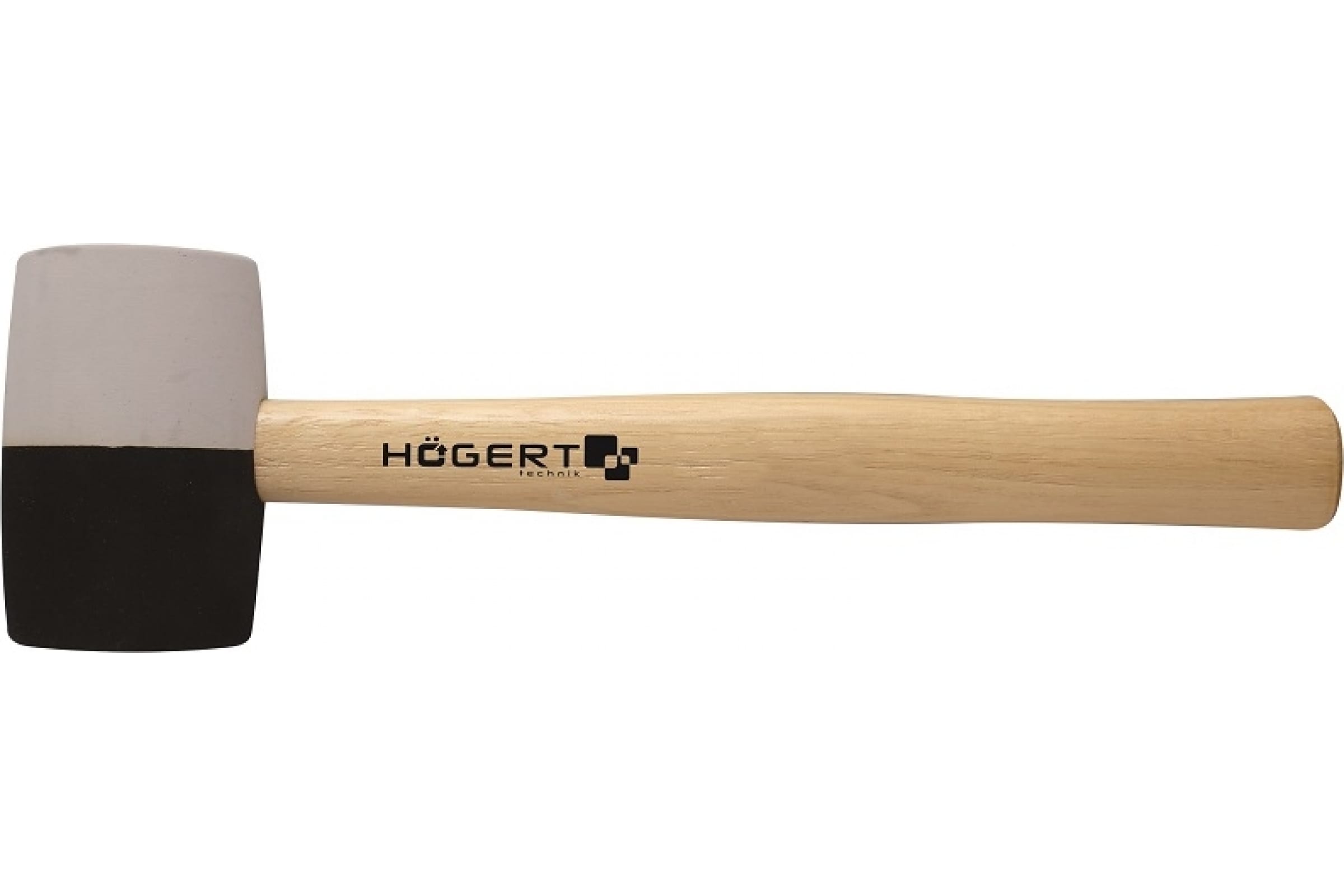 • Резиновый молоток HOEGERT TECHNIK черно-белый 450 г с деревянной рукояткой HT3B044 удобен в использовании.