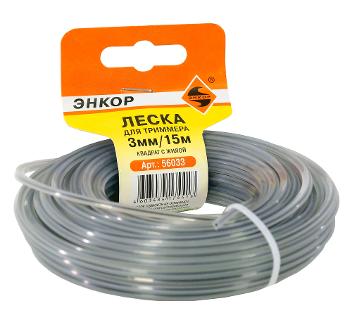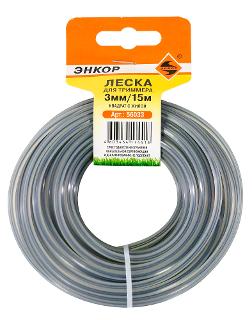 Леска для триммера Ø 3 мм 15м квадрат с жилой Энкор (56033)