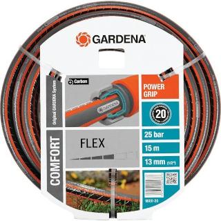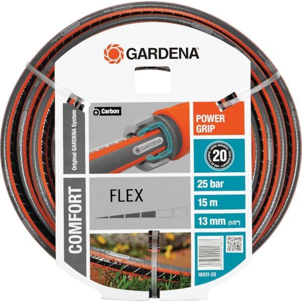 Шланг FLEX Gardena 18031-20.000.00 имеет ребристый профиль Power Grip, который гарантирует идеальное соединение с коннекторами Базовой системы полива.