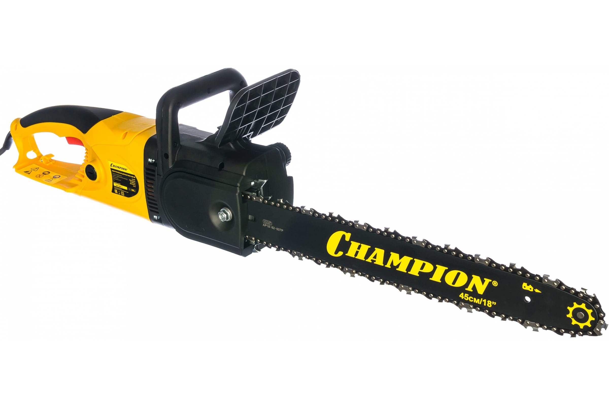 • Электропила CHAMPION 422-18" оснащена продольно расположенным двигателем мощностью 2.2 кВт.