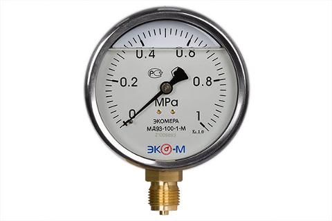 Манометр виброустойчивый ЭКОМЕРА МД93 для измерения давления газообразных и жидких, не сильно вязких и кристаллизующихся сред, не агрессивных по отношению к медным сплавам (вода, пар, газ, масло, керосин, бензин, дизельное топливо) в местах с повышенной вибрацией и пульсацией.