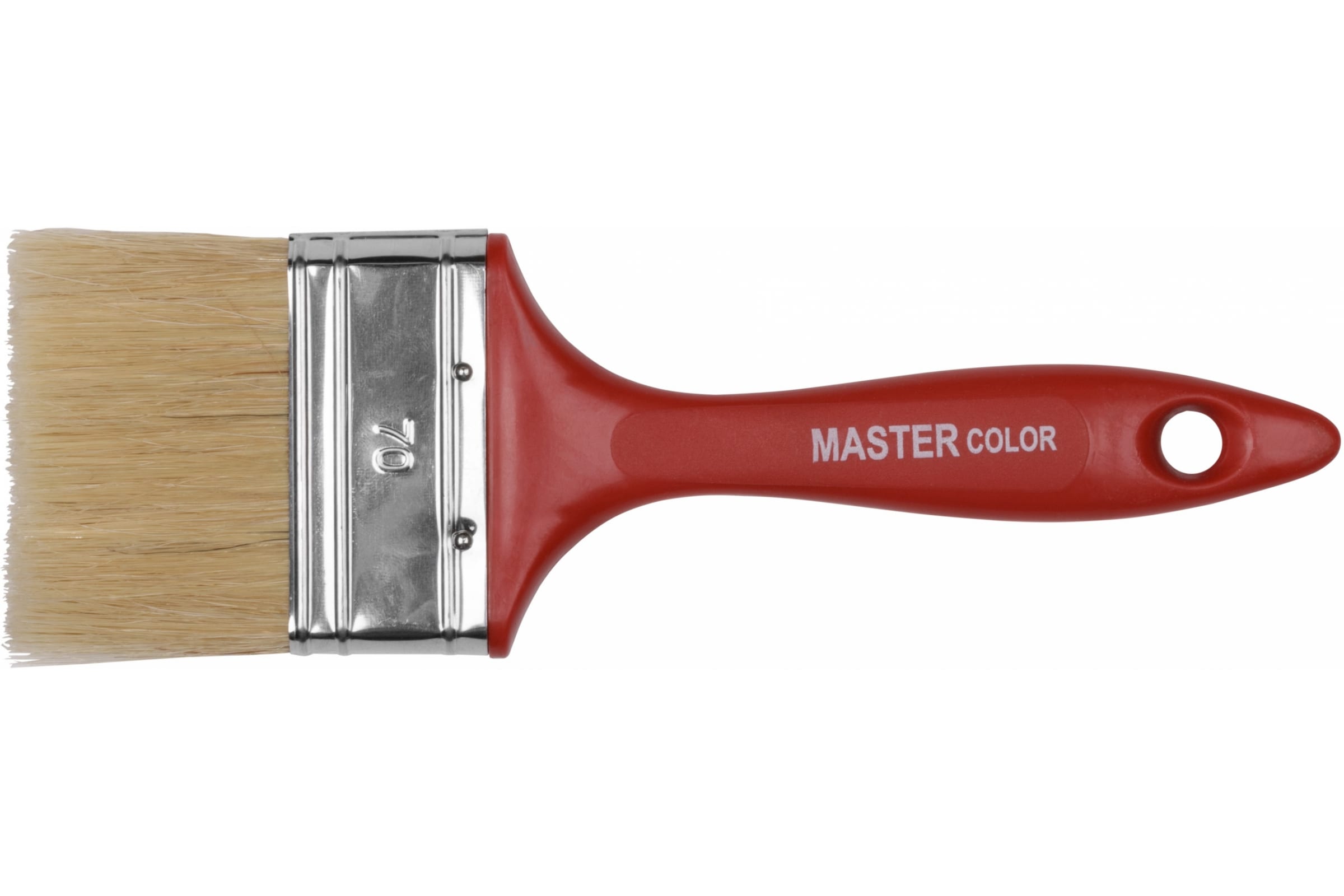 Флейцевая кисть, толщина 12мм, 70% ПБT / 30% светлая натуральная щетина, нержавеющий обжим, пластиковая ручка, ширина 70мм МASTER COLOR (30-0124)