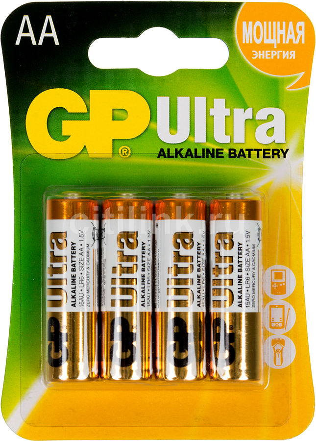 GP Ultra Alkaline AA – набор из 4-х «пальчиковых» батареек с широкой сферой применения.