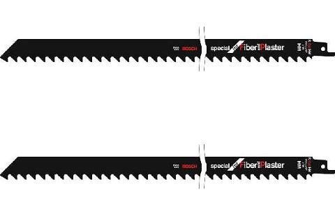 Два разведенных фрезерованных полотна Bosch 2.608.650.972 для сабельных ножовок для распилки пористого бетона, красного кирпича и фиброцемента толщиной до 250 мм.