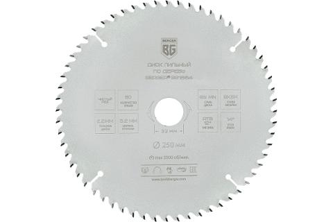 Диск пильный по дереву и ДСП чистый рез 250x32x30x25.4x20 мм, 60z, 3.2x2.2 мм, ATB 12, ат.14 Berger (BG1664)