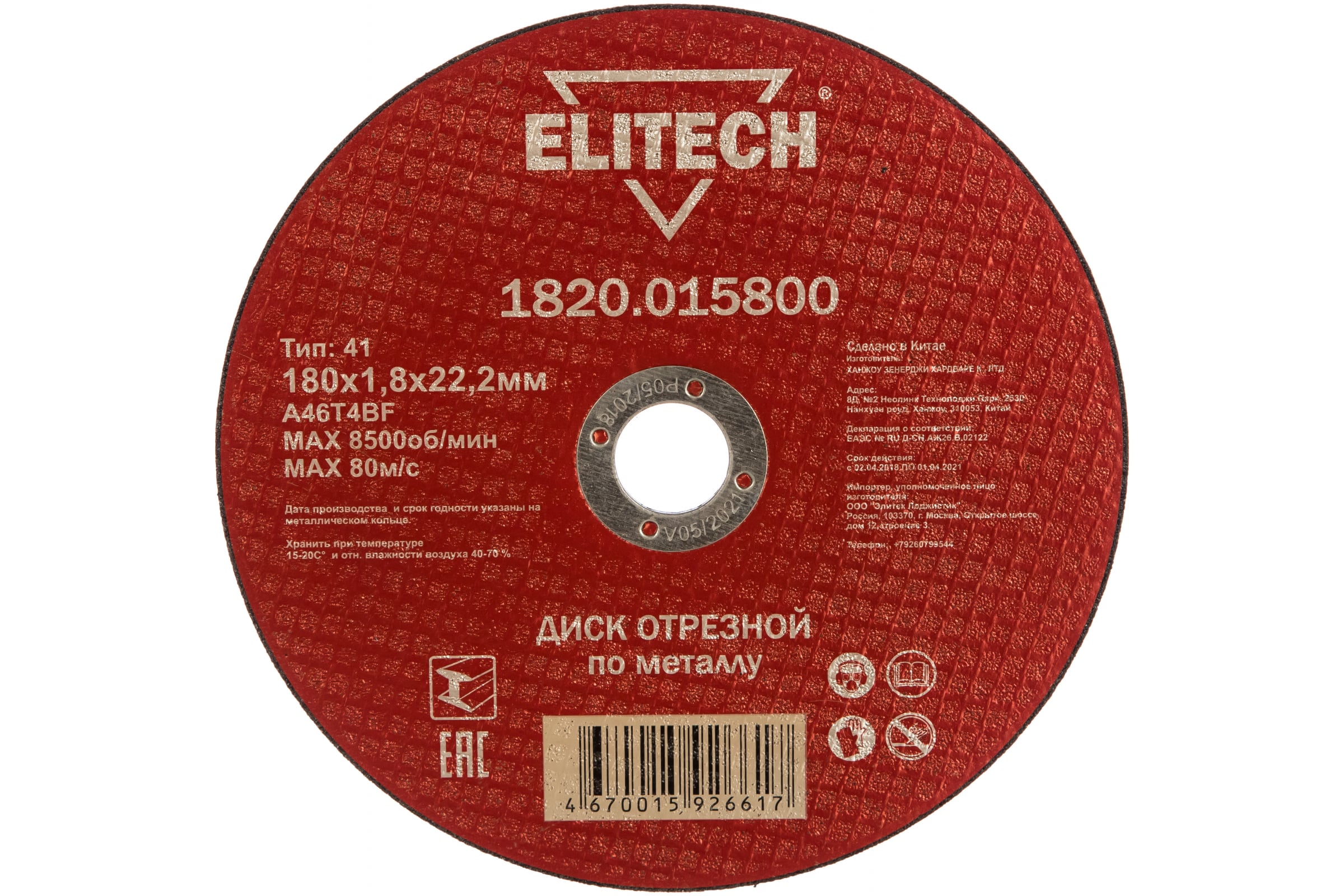 Круг отрезной прямой по металлу (180х22.2х1.8 мм) Elitech (1820.015800)