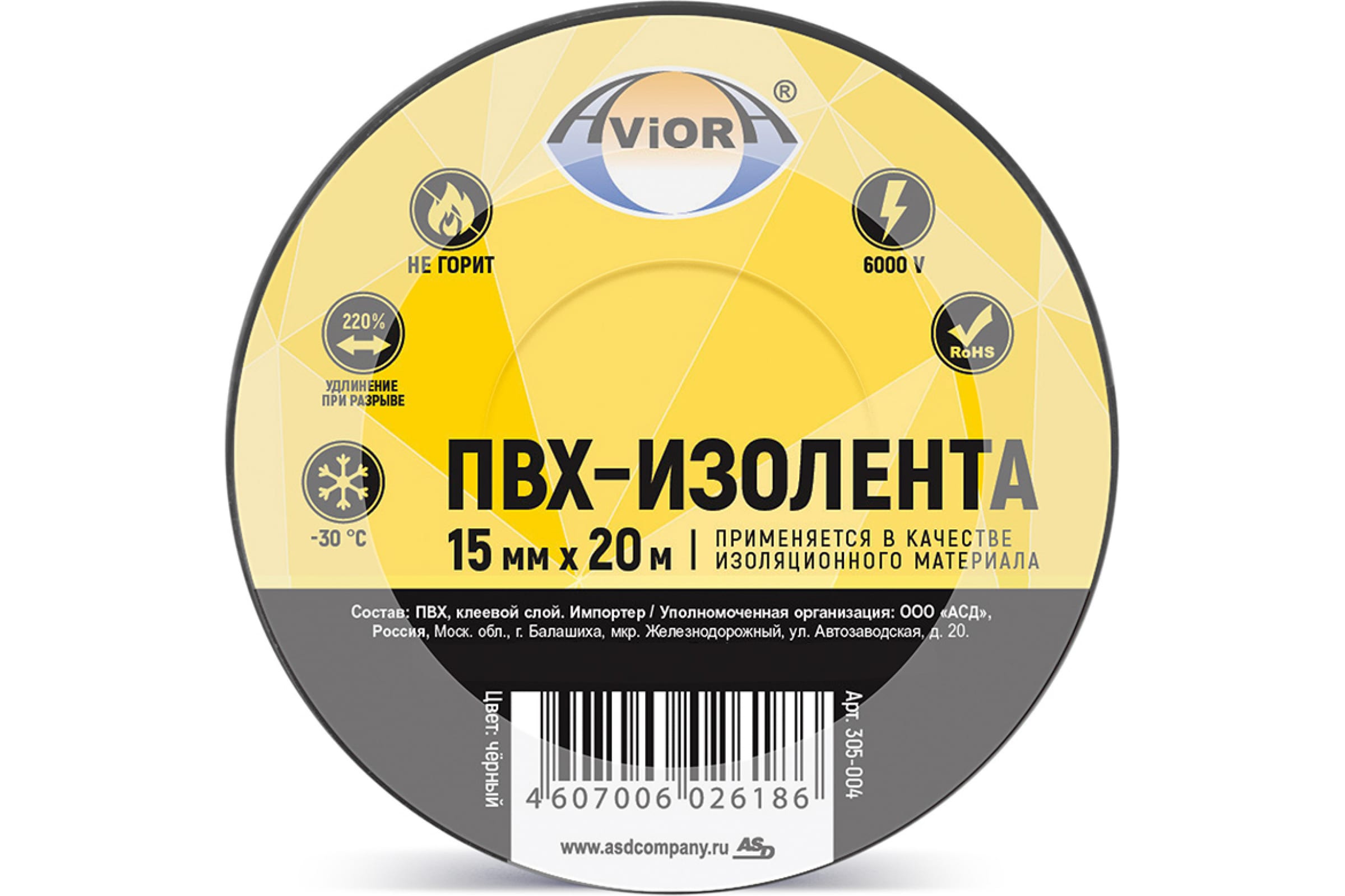 • Изолента AVIORA ПВХ 15мм*20м черная  служит для электротехнической изоляции.