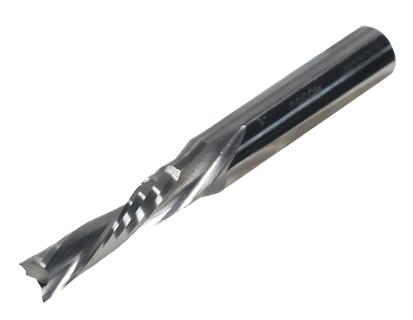 С восходящей спиралью (спираль закручена по часовой стрелке, верхний рез). Как и обычное спиральное сверло, такая фреза быстро извлекает стружку из глубины. Две спиральные режущие грани обеспечивают идеальный нижний край обрабатываемой заготовки.
