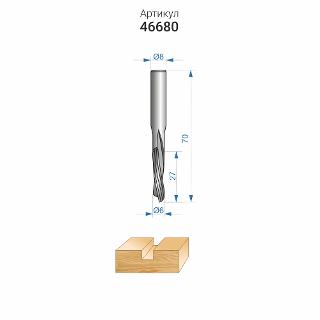С нисходящей спиралью (спираль закручена против часовой стрелки, нижний рез). Выброс стружки направлен вниз. При выборке пазов, шпунтов и фальцев две спиральные режущие грани этой фрезы прижимают шпон фанерованной детали вниз, и обеспечивают идеальный верхний край обрабатываемой заготовки.