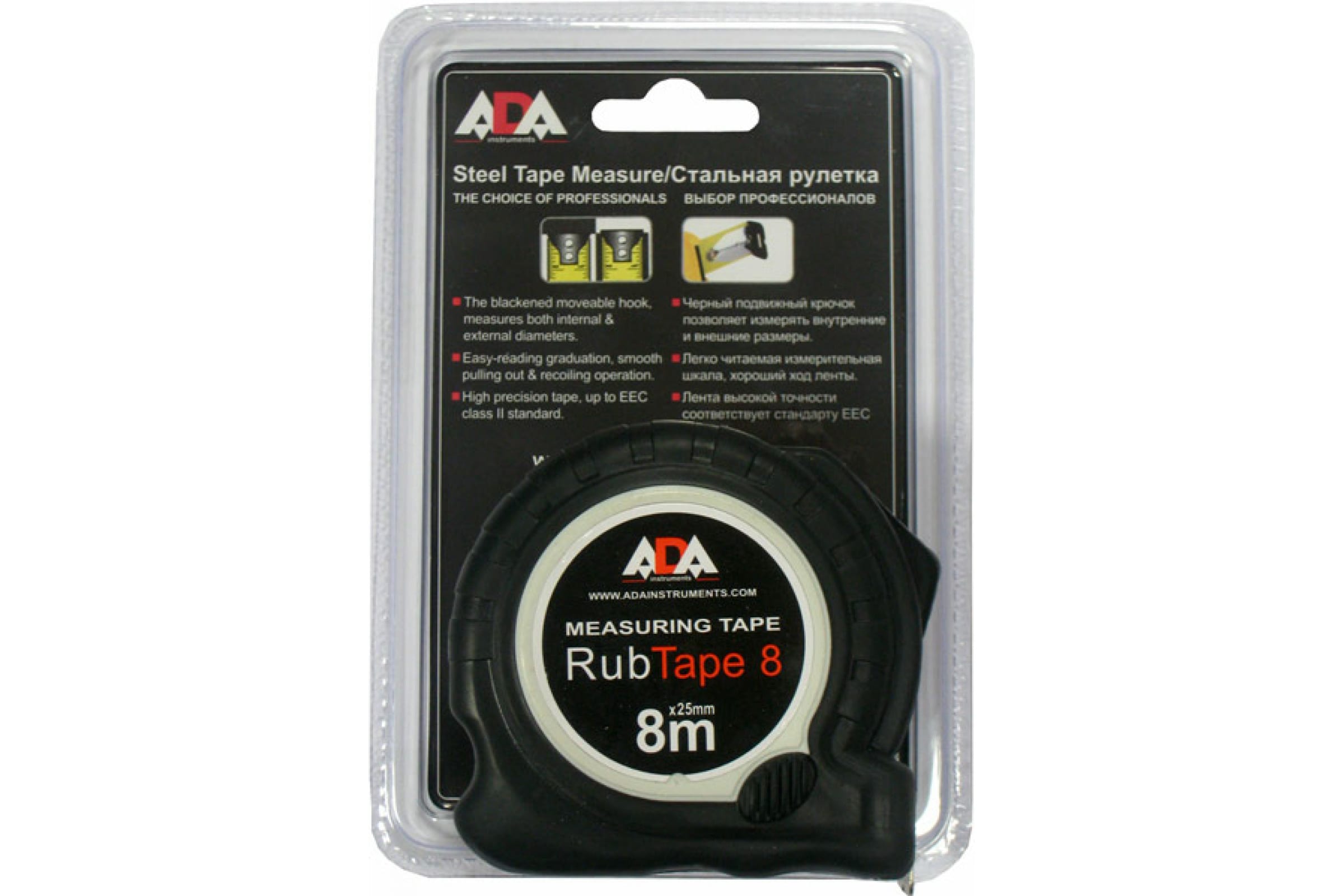 Рулетка ADA RubTape 8 А00157- это очень удобный и надёжный измерительный инструмент.
