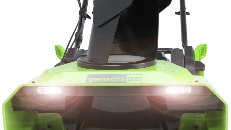 Две LED фары для комфортной работы при недостаточном освещении. Кнопка-предохранитель защищает от случайного включения. Для удобства хранения ручка снегоуборщика складывается.