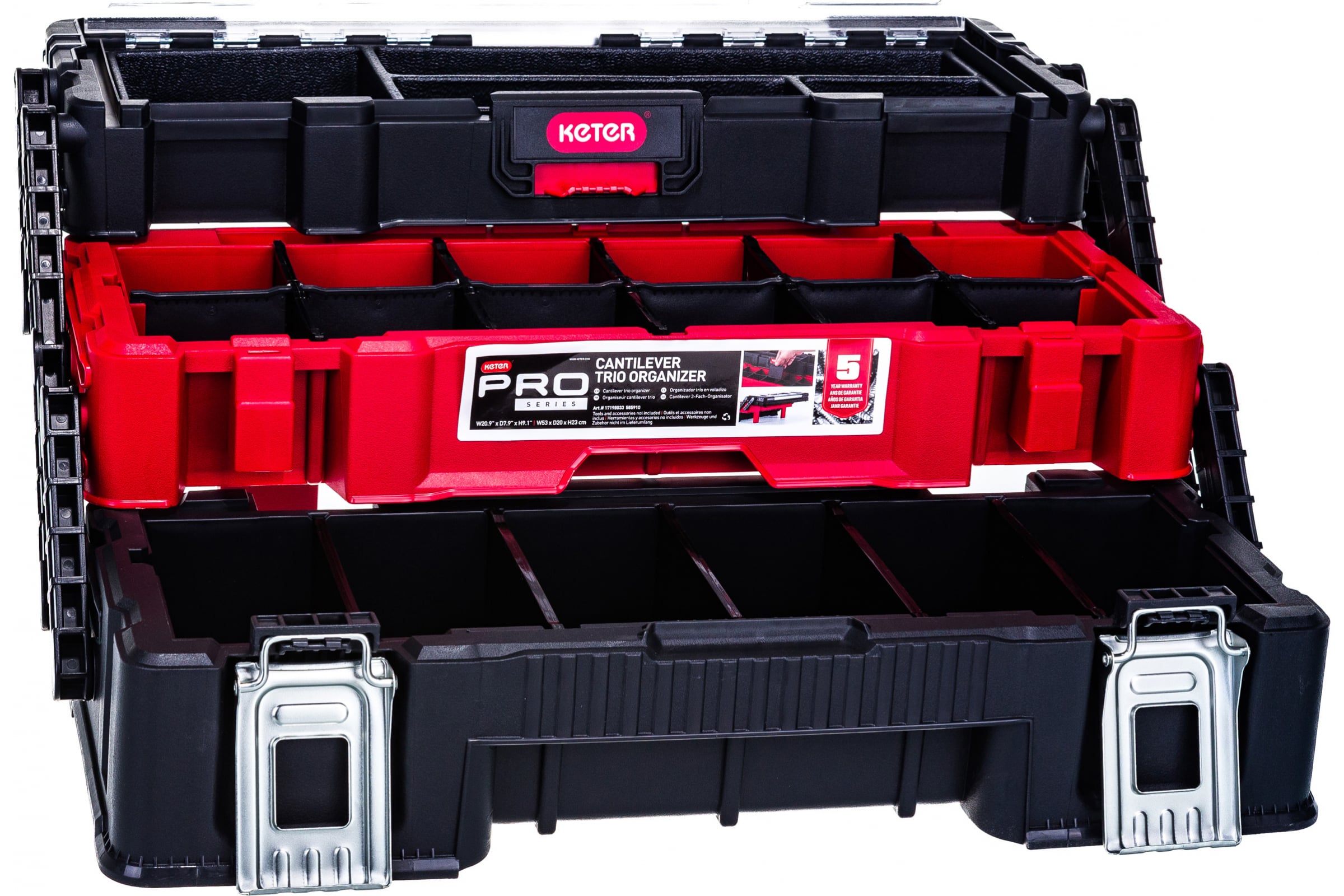 Органайзер Keter CANTI TRIO 17198033 - раздвижная система хранения с тремя полками и разделителями для размещения множества разнообразных мелочей, метизов, небольших ручных инструментов и мн. др.