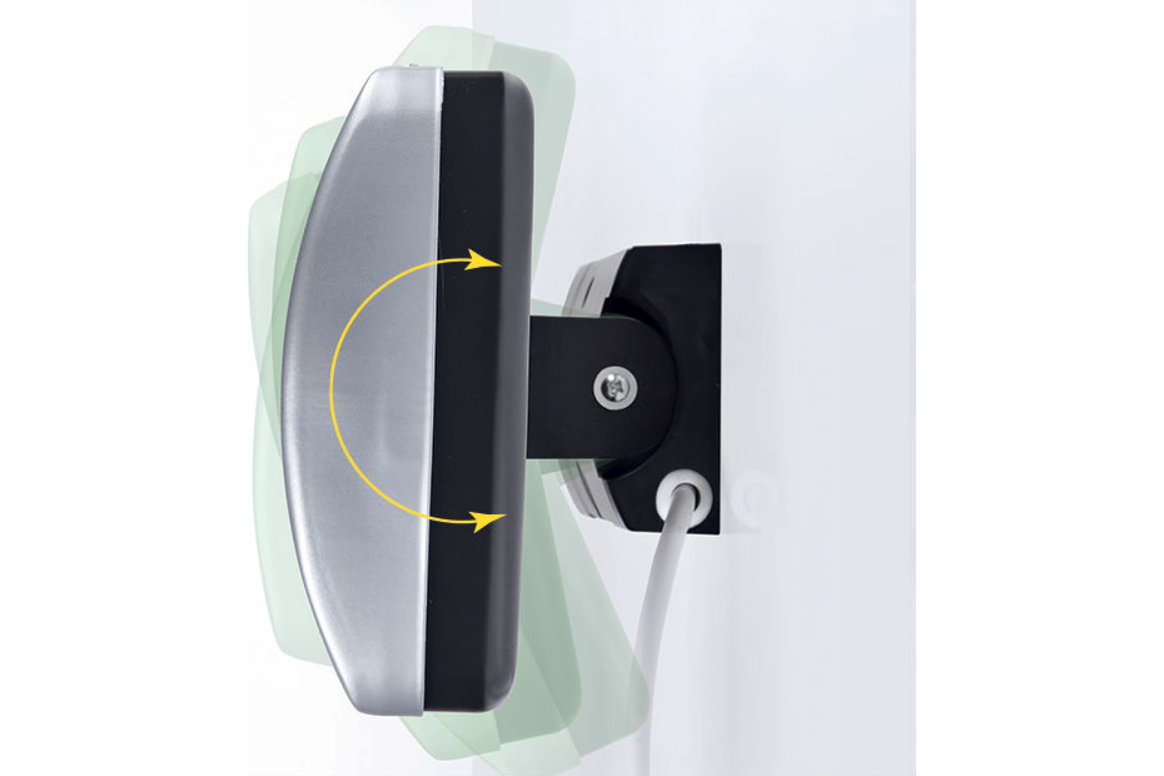 Благодаря встроенному кронштейну с регулировкой угла наклона возможен монтаж изделия на любую настенную поверхность.