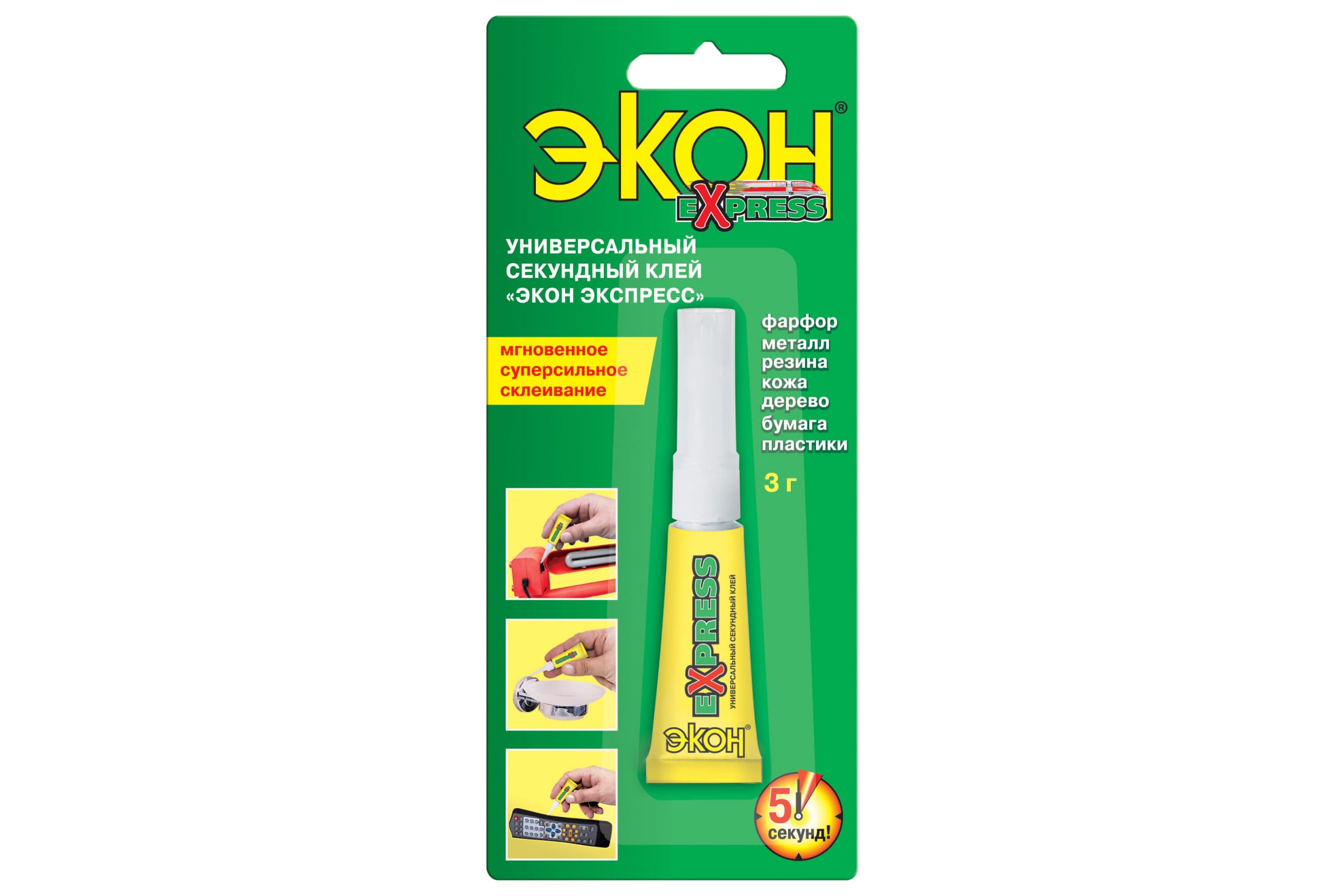 • Секундный клей Экон Экспресс 3 г  обеспечивает сверхсильное склеивание широкого спектра материалов.
