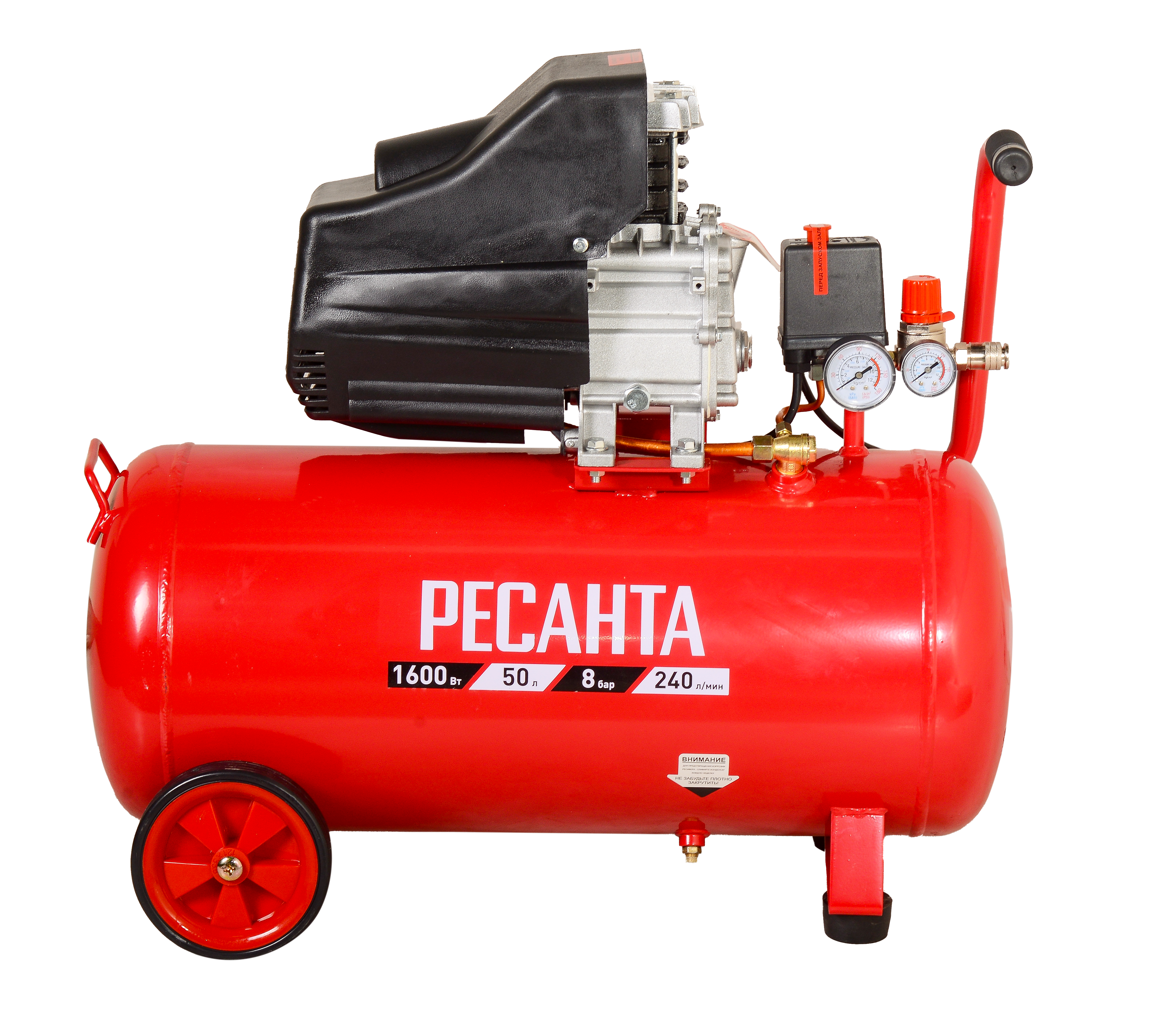 Компрессор Ресанта КП-50/300М поставляет сжатый воздух для работы пневмоинструментов. Поршневая одноцилиндровая модель закачивает воздух в баллон и останавливается при достижении давления 8 бар. Двигатель мощностью 2000 Вт обеспечивает производительность подачи воздуха 300 л/мин. Это позволяет использовать полупрофессиональный аппарат в мастерских, СТО, гаражах. Предохранительный клапан помогает вовремя уменьшать напор. Объем ресивера 50 л позволяет устройству делать перерывы в работе, защищая узлы от износа.