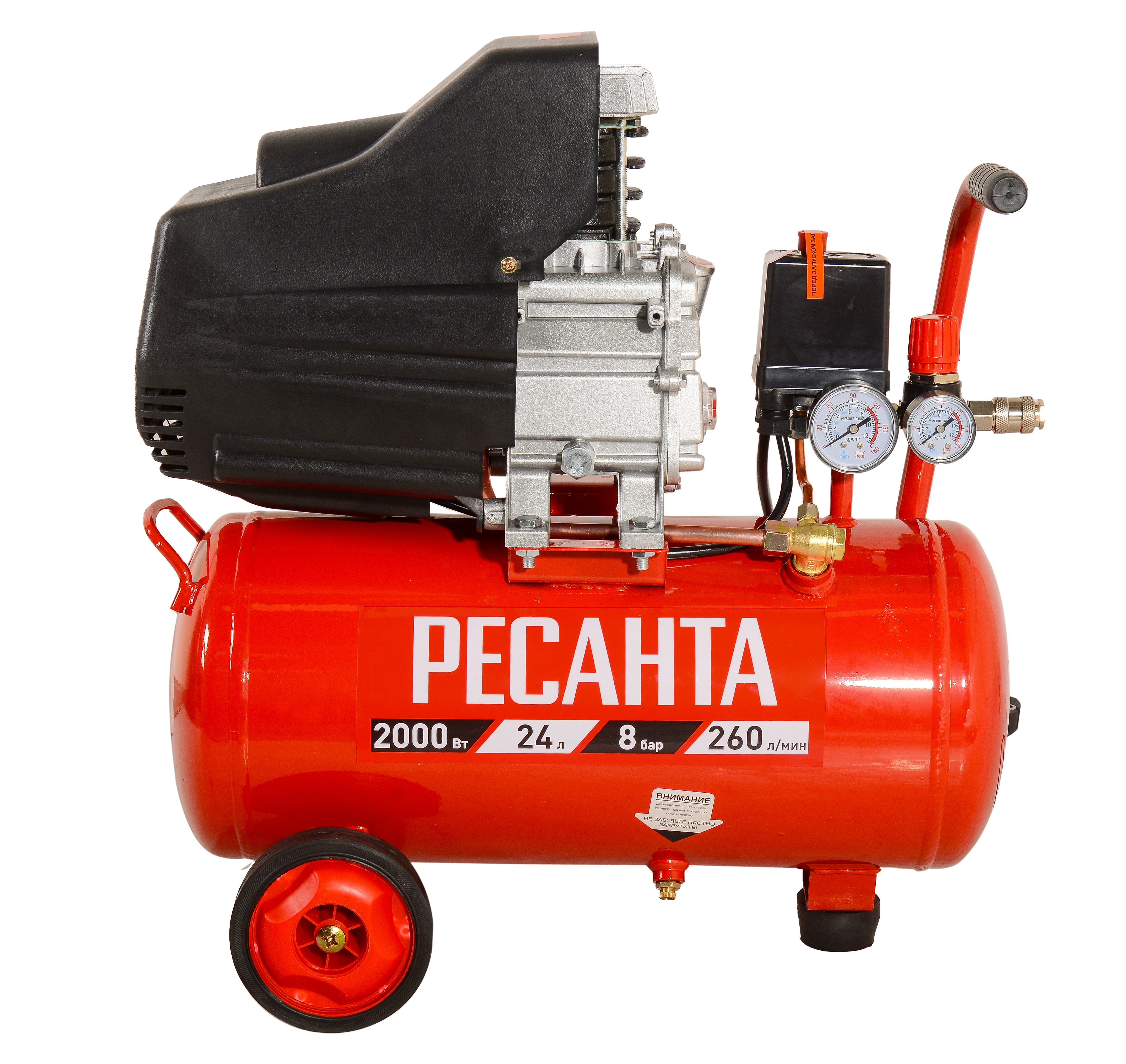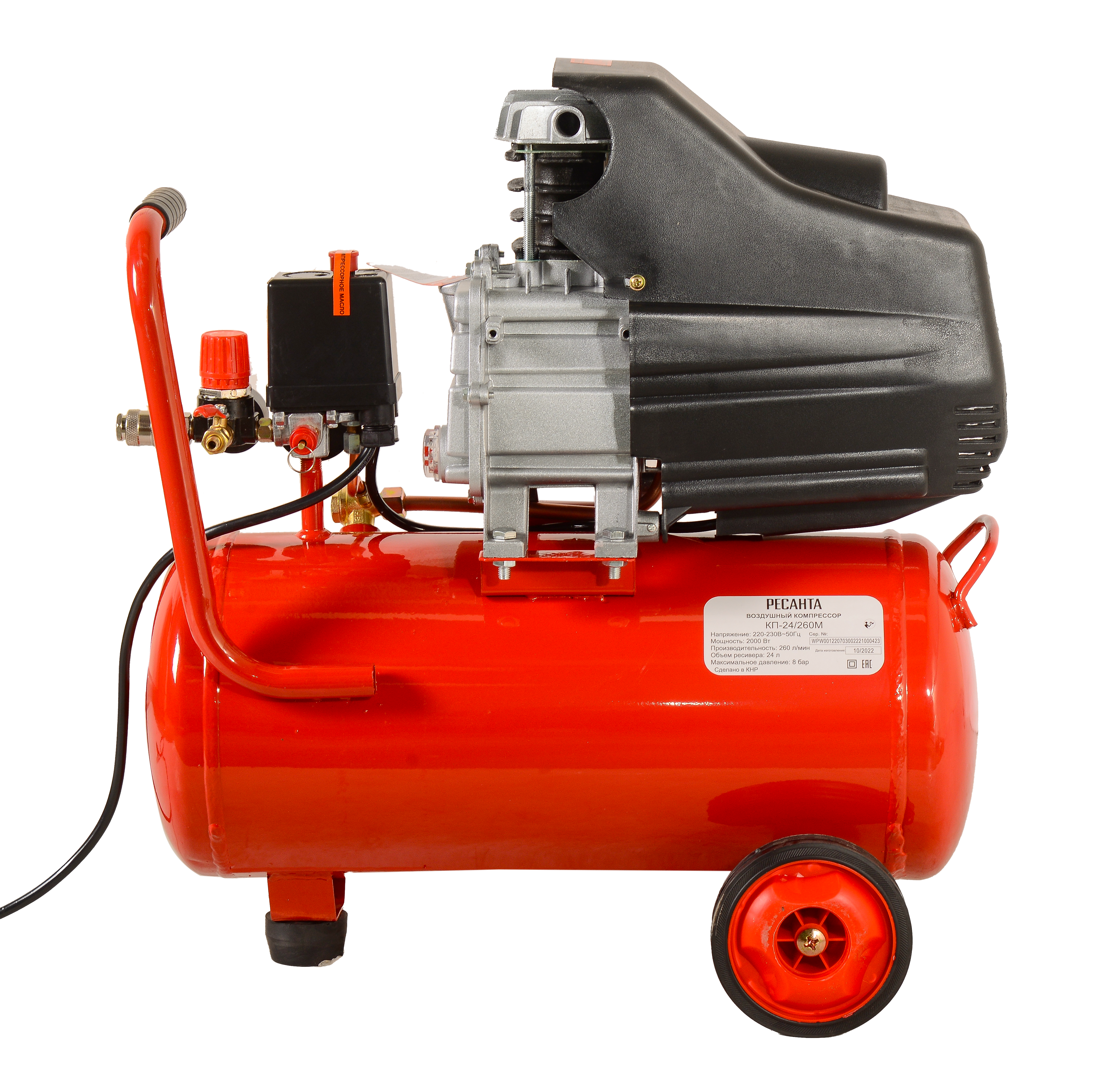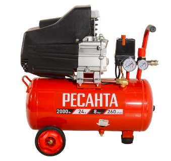 Модель воздушного компрессора Ресанта КП-24/260М является механическим устройством, которое предназначено для создания потока воздуха под высоким давлением, необходимого для работы пневмоинструментов и оборудования. Агрегат состоит из двигателя, горизонтального ресивера и регулирующей аппаратуры. Он относится к категории поршневых масляных агрегатов, имеющих прямую передачу. Номинальная мощность модели Ресанта КП-24/260М составляет 2кВт. Производительность – 260л/мин. Объём ресивера – 24 л. Величина создаваемого давления – 8 бар.