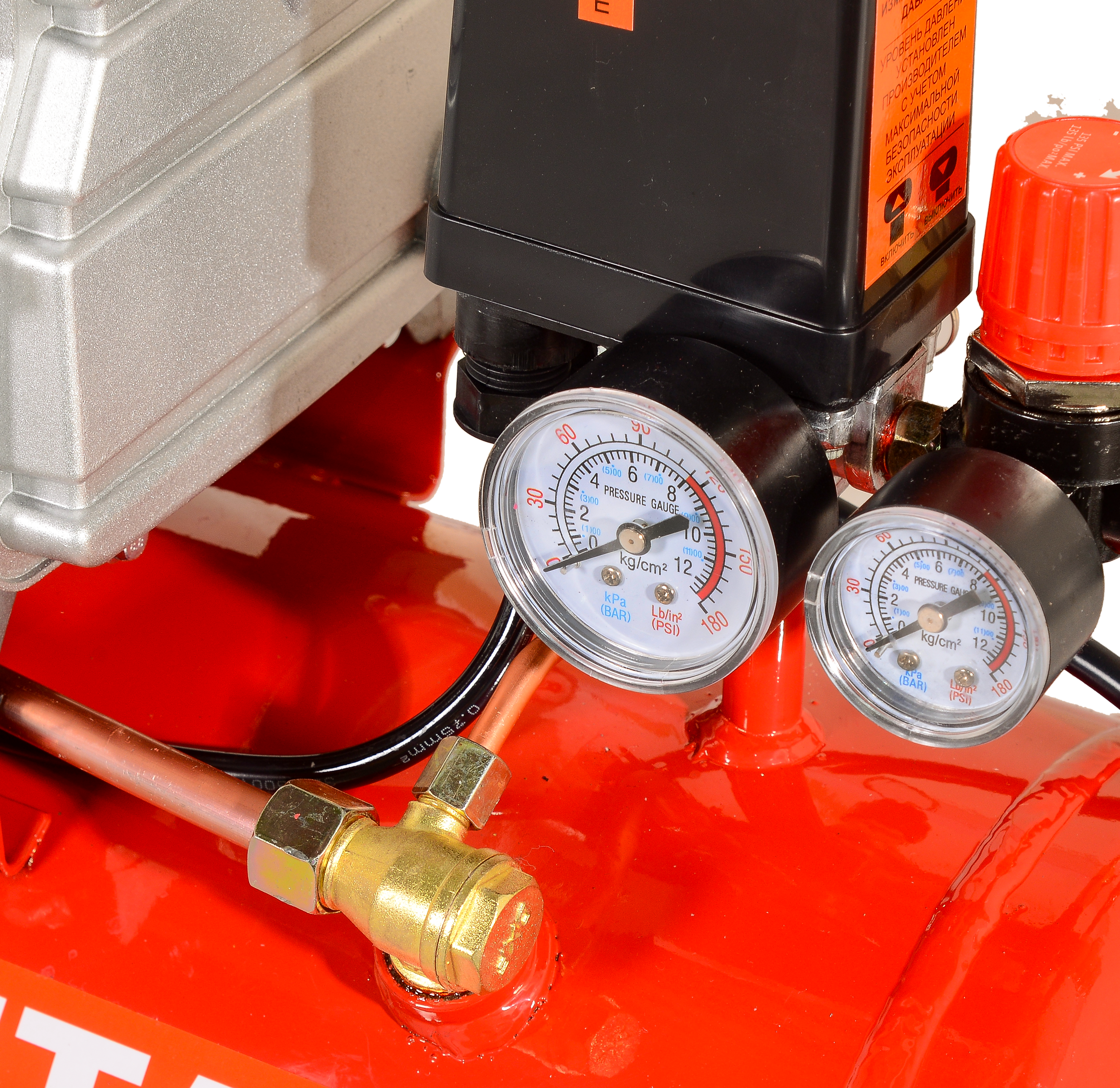 Модель оснащена системой автоматического управления, которая позволяет регулировать выходное давление воздуха, а также предохранительным клапаном высокого давления, что делает эксплуатацию агрегата удобной и безопасной. В конструкции имеется специальный дренажный клапан для слива накапливающегося конденсата. Для перемещения агрегата предусмотрены колёса и удобная рукоятка. Вес компрессора – 17.3кг. Параметры сети питания – 220В, 50Гц.