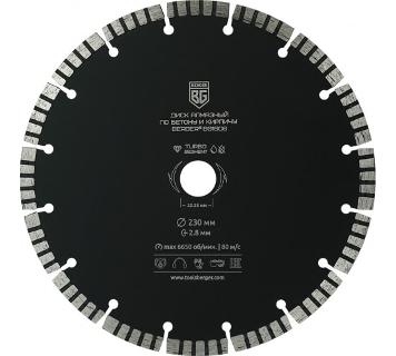 Круг алмазный отрезной по бетону и кирпичу турбо-сегментированный Ø 230x2.8x22.2мм Berger BG1606