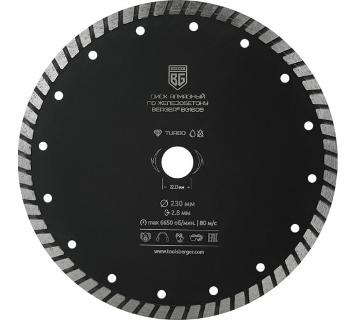 Диск алмазный отрезной по железобетону тип турбо 230x2.8x22.23 мм Berger BG1609 предназначен для использования с УШМ.