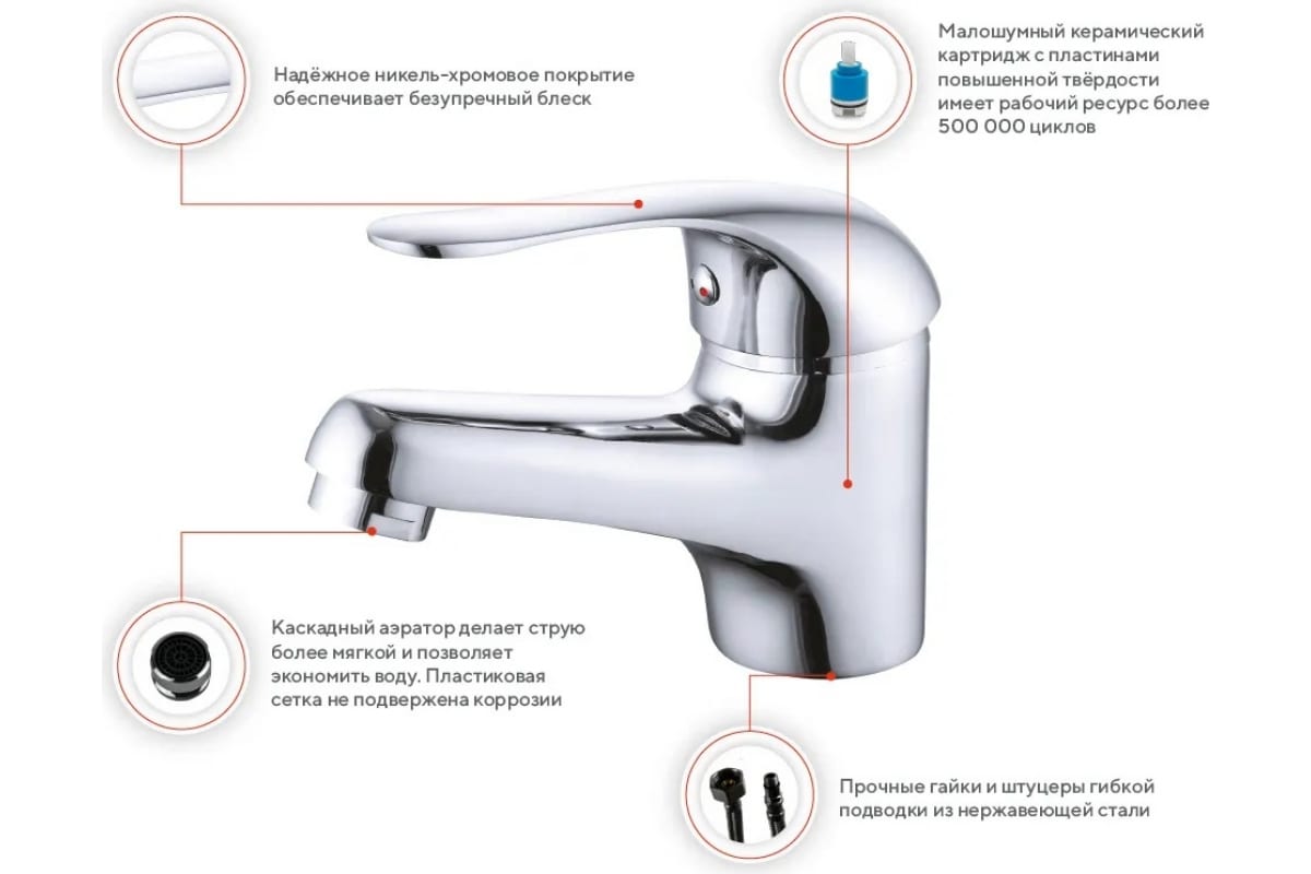• Смеситель для раковины KONNER LINE LIN1000  оснащён каскадным аэратором с пластиковой сеткой, делающей струю более мягкой и позволяющей экономить воду.