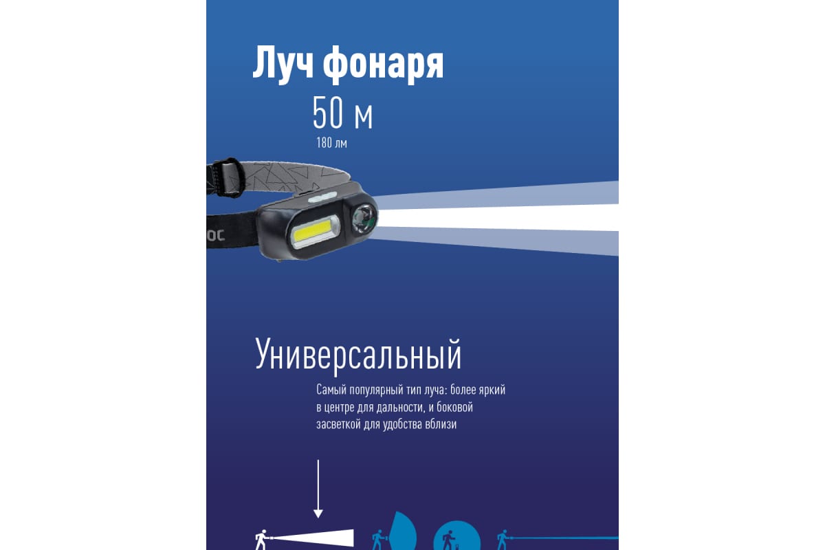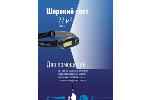 Фонарь КОСМОС 3Вт ХРЕ, 3Вт СОВ, сменный аккумулятор 1200mAh (1412812)