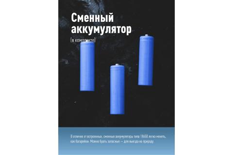 • Источник питания: съемный Li-ion аккумулятор 18650 3,7В 1200 мА/ч (входит в комплект).