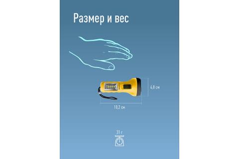 • Ручной фонарь КОСМОС 0,5Вт LED+4SMD(1Вт)/1xAA/корпус ABS-пластик/ремешок ручной, 2в1 без лишних функций, ценовой лидер в ярком желтом цвете.