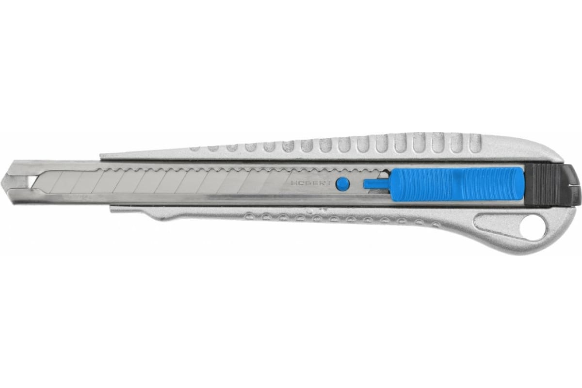 Пластиковый нож HOEGERT TECHNIK с отламывающимся лезвием 9 мм, алюминиевый HT4C635 полезен для отделочных работ. Особенно подходит для резки картона, обоев, ковролина, брезентовых тканей, печатных и ПВХ пленок и т.д. лезвие с повышенной стойкостью к растрескиванию и сколам, изготовленное из высокоуглеродистой пружинной стали SK5;