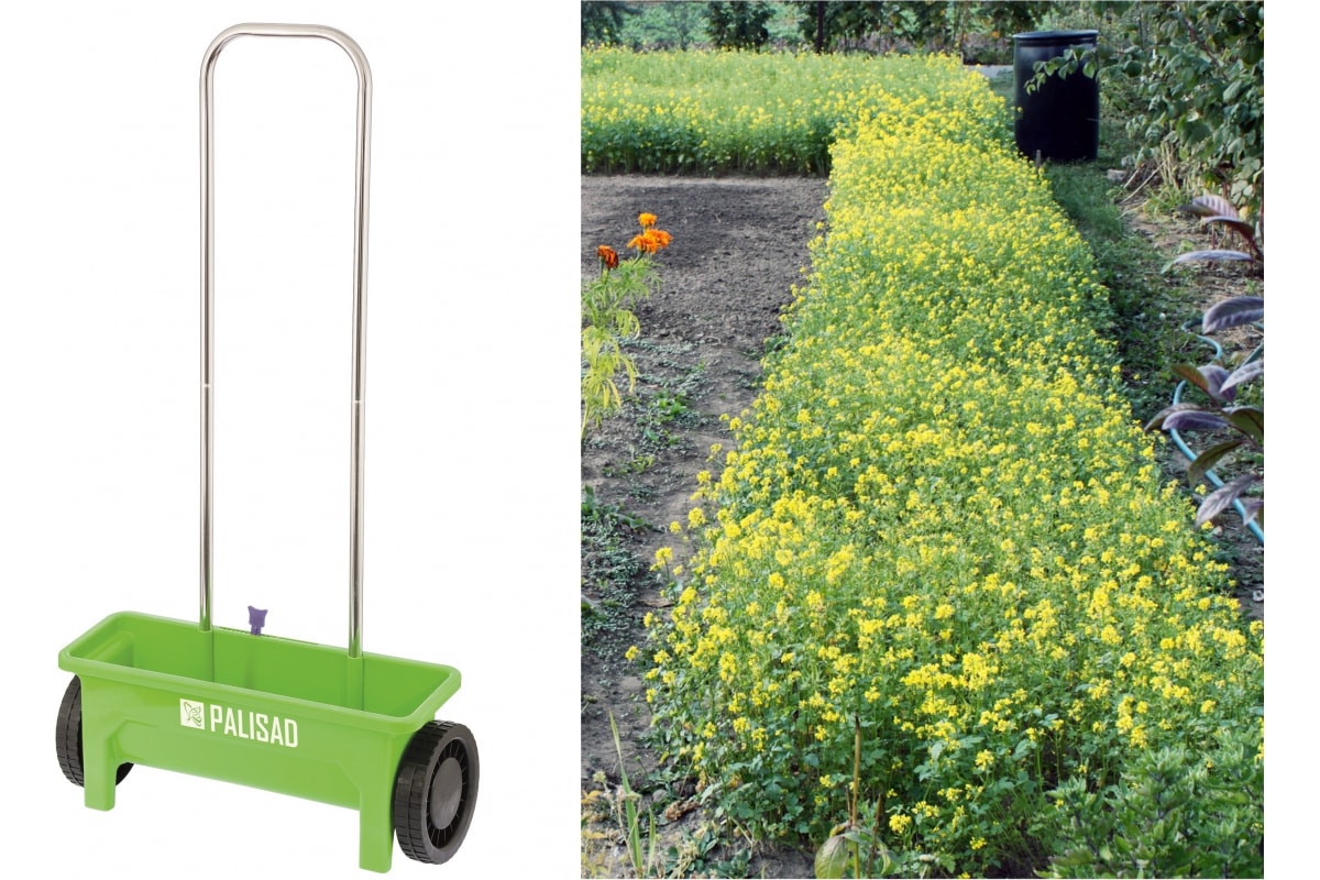• Механическая сеялка PALISAD 12 л 63950 используется для посева семян в почву.