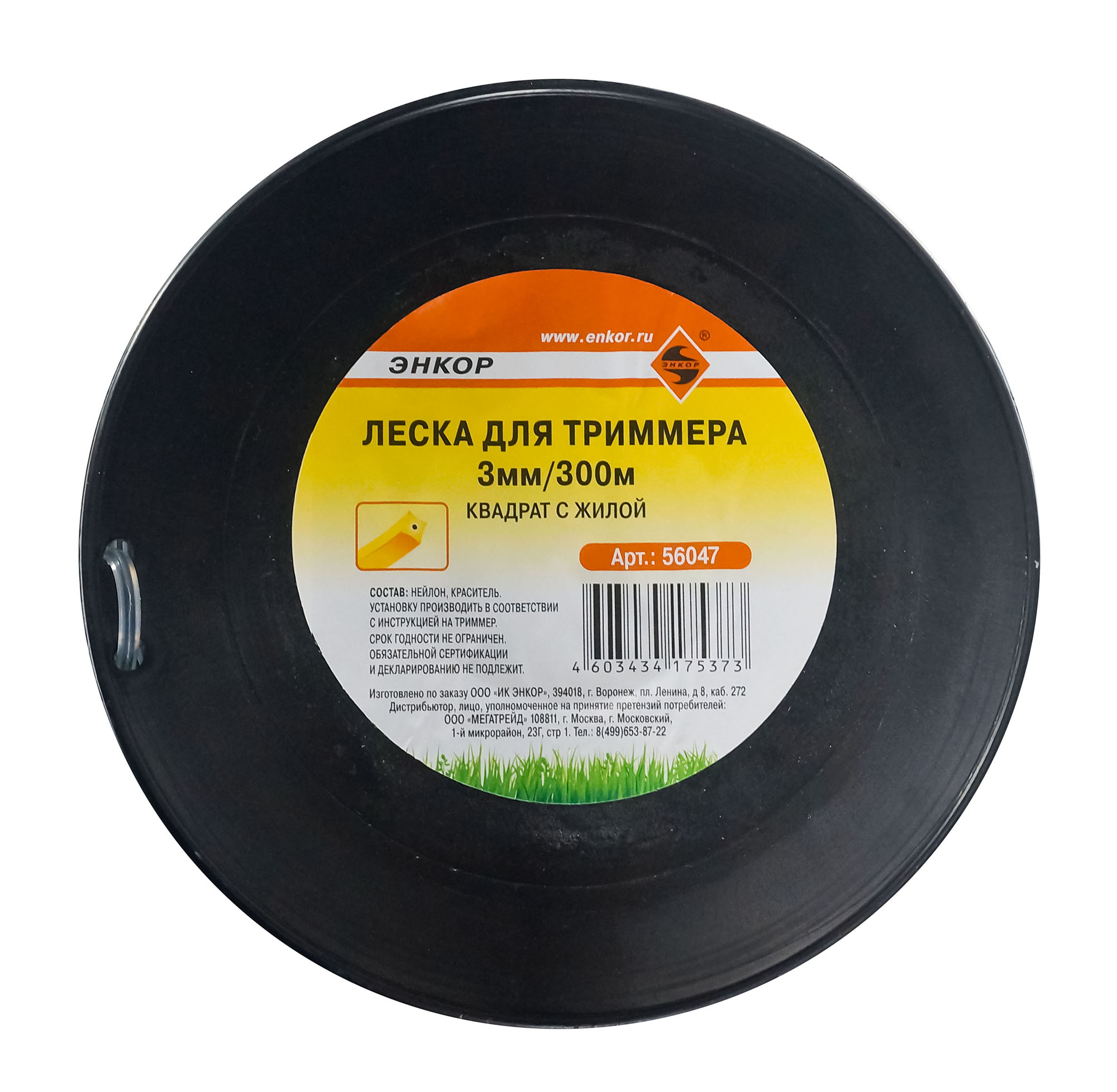 Леска для триммера Ø 3 мм 300м квадрат с жилой Энкор (56047)