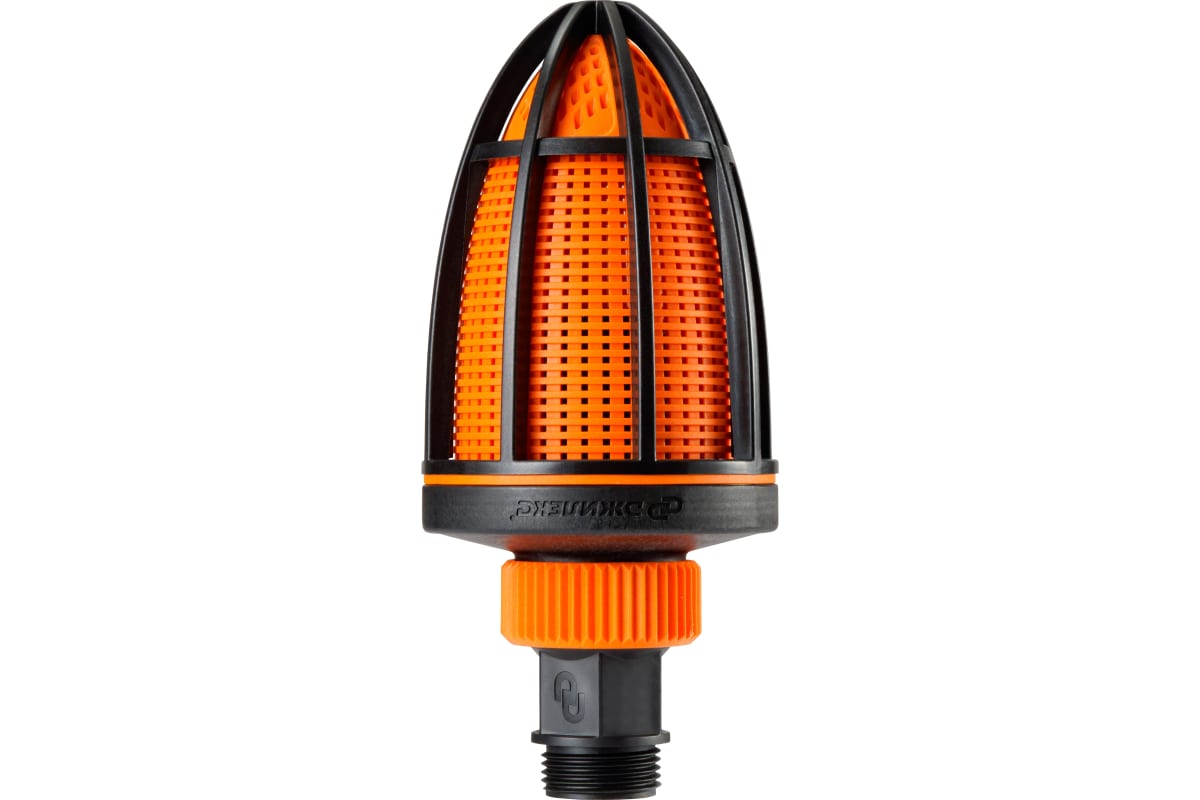 Конусообразная форма нижней крышки позволяет максимально эффективно использовать площадь всасывания, даже если при неквалифицированном монтаже магистрали фильтр опустится на дно колодца. Площадь заборной сетки фильтра в десятки раз больше, чем площадь входного отверстия насоса. Это позволяет насосу полноценно качать воду, даже при частичном засорении всасывающей сетки, не теряя при этом своих характеристик и не подвергаясь перегрузкам. Фильтрующая сетка легко разбирается, что позволяет очищать её от механических примесей, а это в свою очередь резко увеличивает срок службы установленного оборудования.