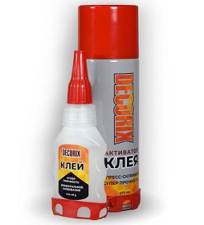 Профессиональный высококачественный двухкомпонентный клей DECORIX® – это набор из быстро полимеризующегося супер-клея (Компонент А) и аэрозольного активатора (Компонент Б).