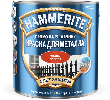 Область применения Используют как для цветных, так и черных металлов. Поверхность не нуждается в специальной подготовке. Эмаль быстро сохнет. Благодаря Hammerite Smooth создают прочное антикоррозийное покрытие, которое становится эффективной защитой от ржавчины в течение как минимум 8 лет. Применяют эмаль также для некоторых видов пластика и дерева. На окрашиваемой поверхности появляется глянцевое гладкое покрытие. Hammerite Smooth используют как на открытом воздухе, так и внутри разных помещений. Эмаль наносят с помощью валика и кисти, методом распыления.