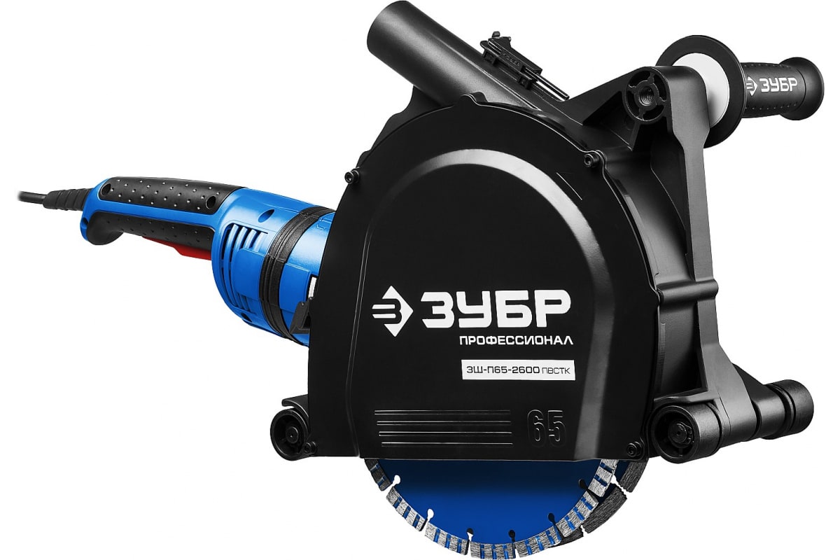 • Электрический штроборез ЗУБР ПРОФЕССИОНАЛ ЗШ-П65-2600 ПВСТК используется для штробления и резки канавок в бетонных и кирпичных поверхностях.