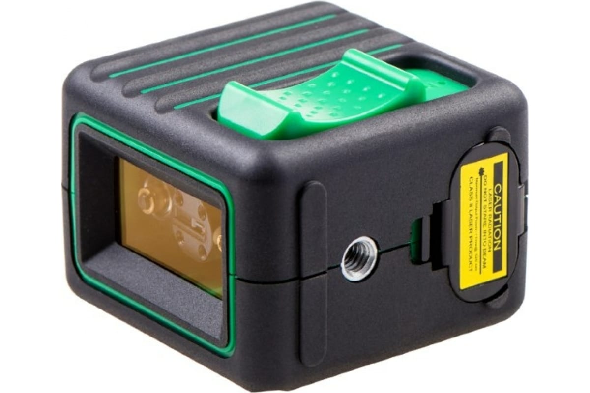 Он проецирует горизонтальную и вертикальную линии зеленого цвета - зеленый луч гораздо лучше виден, чем красный (при одинаковых условиях).
