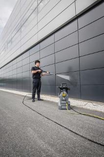 Высокие параметры производительности (расход воды 400 л/ч при давлении 100 бар) и прочные колеса, обеспечивающие простоту транспортировки аппарата и его перемещения во время работы, придают модели HD 4/10 X Classic универсальные возможности.