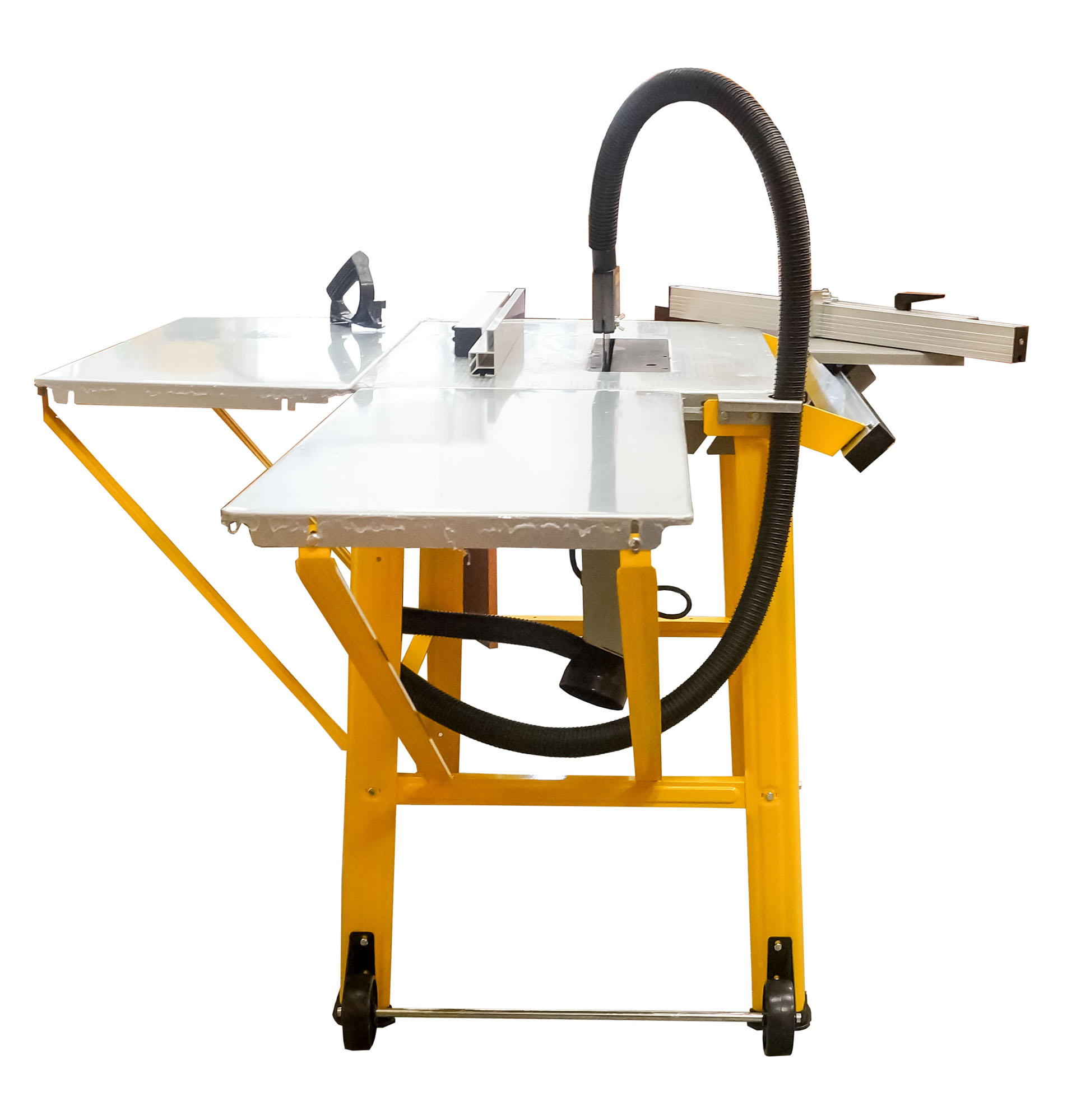 Особенности конструкции: Плавная регулировка вылета диска по высоте. Плавная регулировка угла наклона пильного диска. Электромагнитный пускатель для безопасной работы. Рабочий стол станка имеет удлинитель. Станок оснащен подвижной кареткой для распила габаритных заготовок. Отвод стружки производится из двух зон. Имеются колеса для легкой транспортировки.