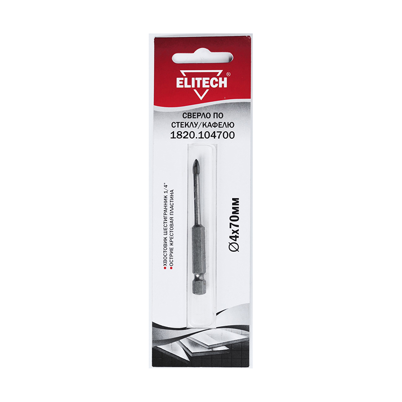 Сверло по стеклу и керамике (4х70 мм) ELITECH (1820.104700)