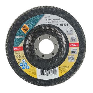 Круг лепестковый торцевой по нержавейке Ø 125х22,2 К80 конический Энкор (55402)